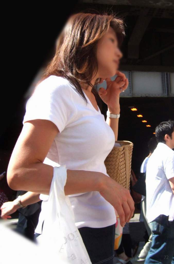街中を歩くデカ乳の奥さんを見掛けたら、胸元をバレずにガン見www