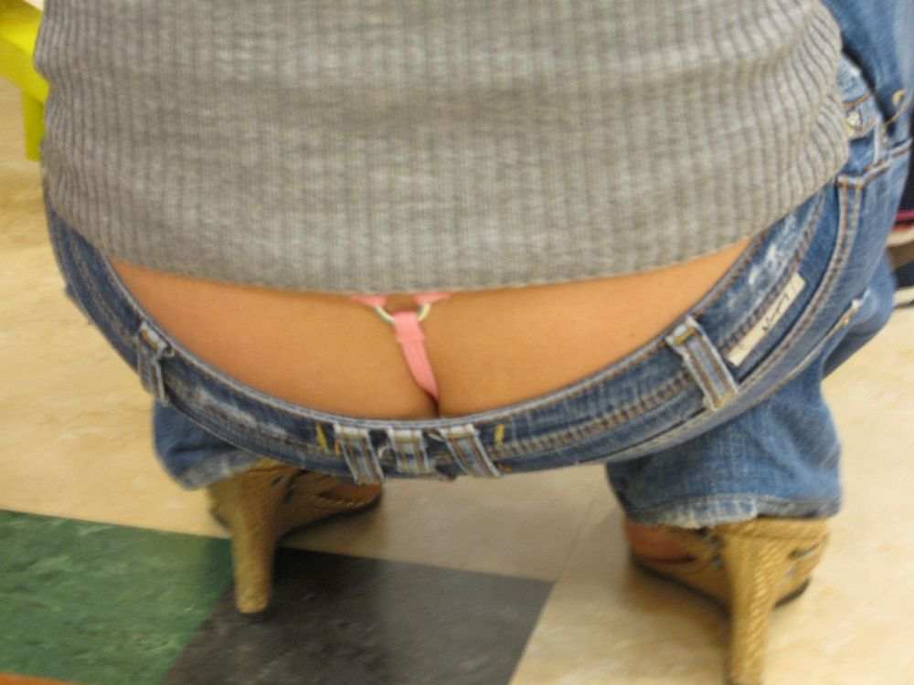 座るお姉さんのパンツがはみ出してるハミパン画像www