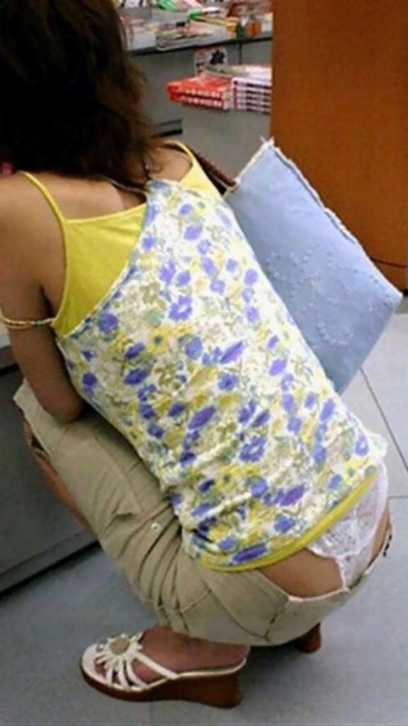 座るお姉さんのパンツがはみ出してるハミパン画像www