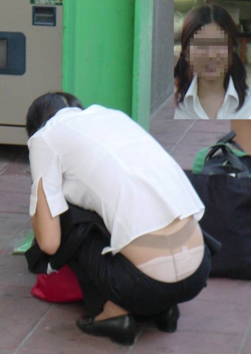 座るお姉さんのパンツがはみ出してるハミパン画像www