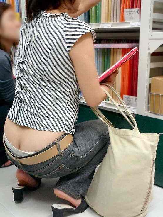 座るお姉さんのパンツがはみ出してるハミパン画像www