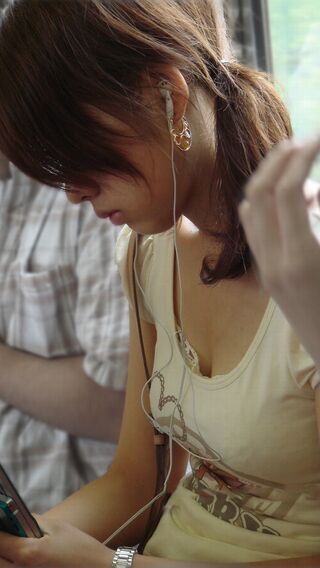 無意識だからエロい胸チラ