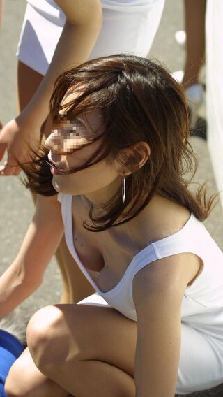 無意識だからエロい胸チラ