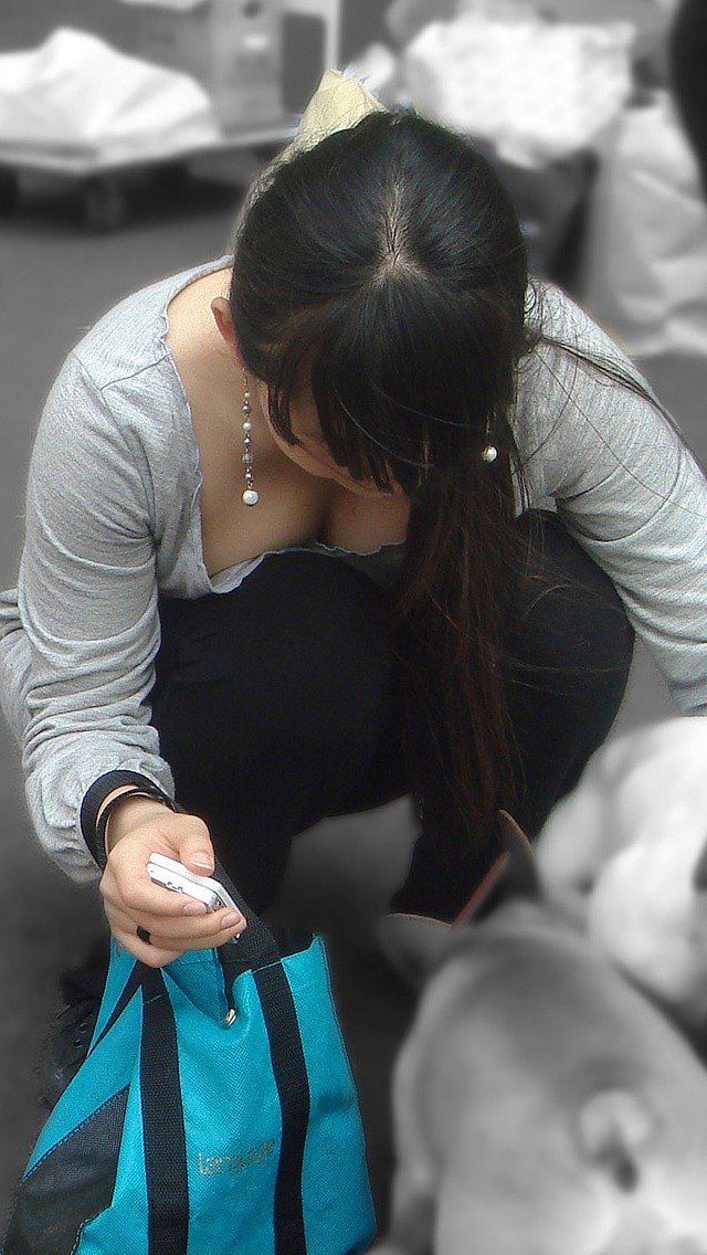無意識だからエロい胸チラ