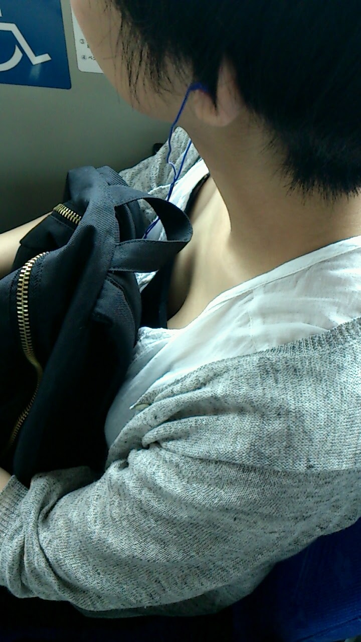 無意識だからエロい胸チラ