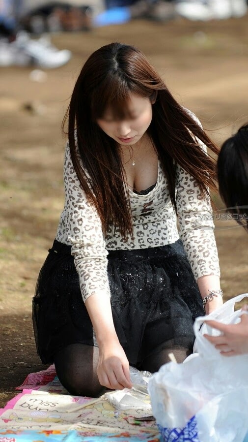 無意識だからエロい胸チラ