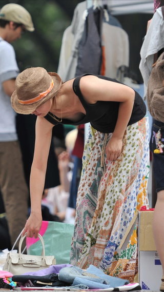 無意識だからエロい胸チラ