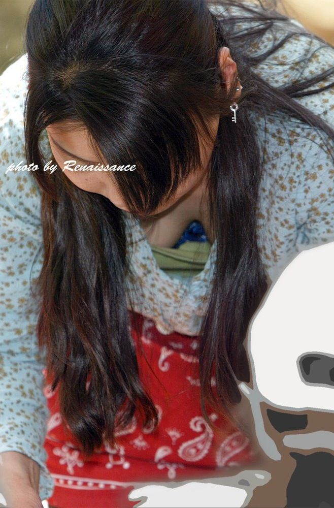 無意識だからエロい胸チラ