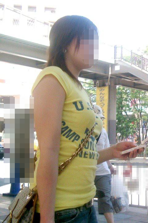 肩掛けカバンのベルトで強調されたおっぱい
