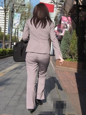 パンツスーツのOLがお尻をプリプリさせて外を歩く