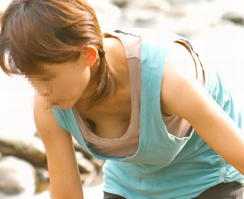 胸元がユルユルな着衣を着てる胸チラ
