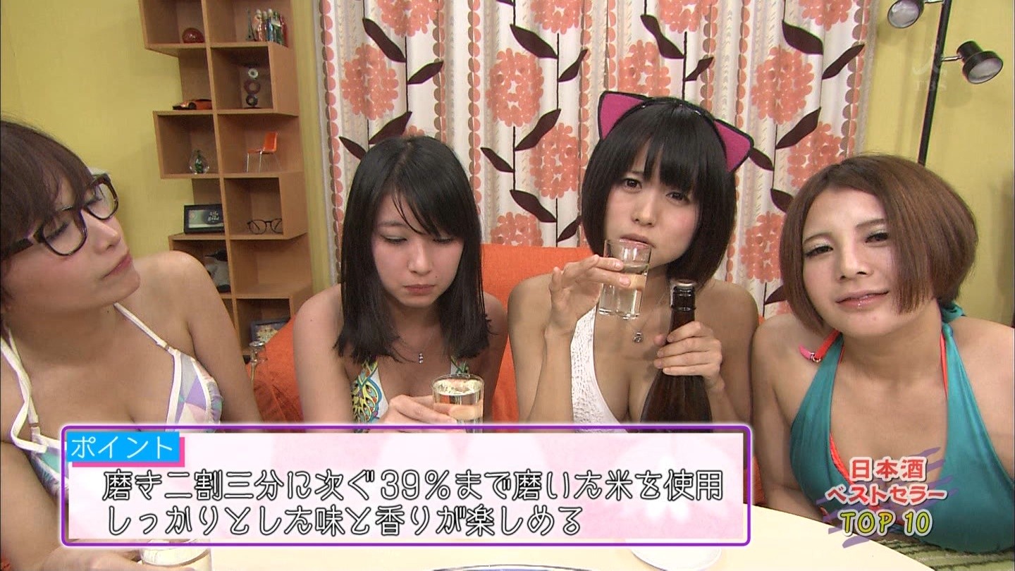 グラドルが下乳出して日本酒飲んでる
