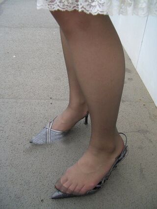 ベージュパンストの爪先