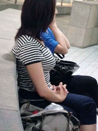 街撮りした胸のハリがエロい着衣おっぱい