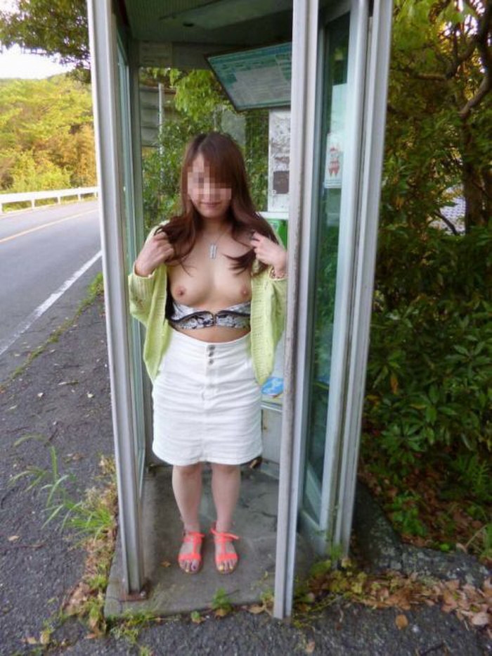お姉さん電話ボックス内で露出色々20枚