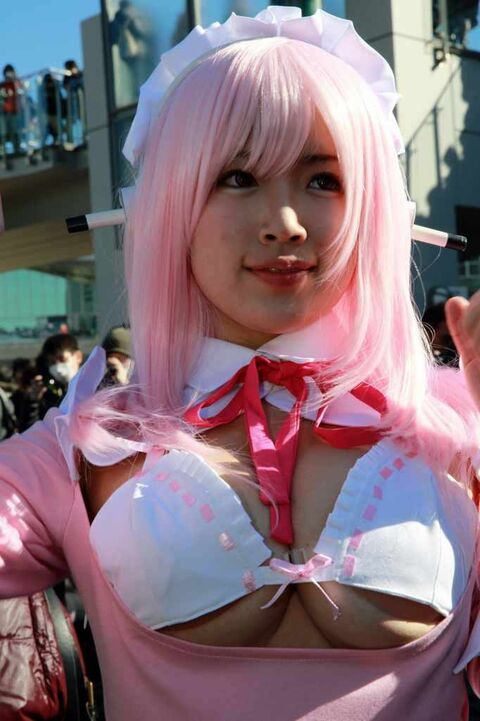 過激なコスプレイヤーのおっぱいがはみ出ちゃってるハプニングwww