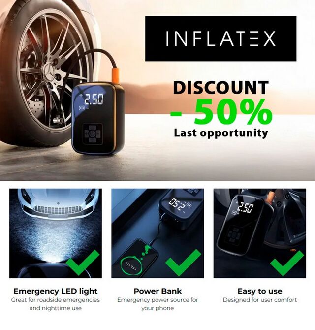 For cars, bicycles, and inflatables ? a universal solution! 3-in-1: pump, flashlight, power bank ? the perfect car accessory!