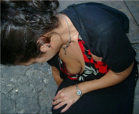 完全に乳首・乳輪まで見えちゃってる胸チラ画像