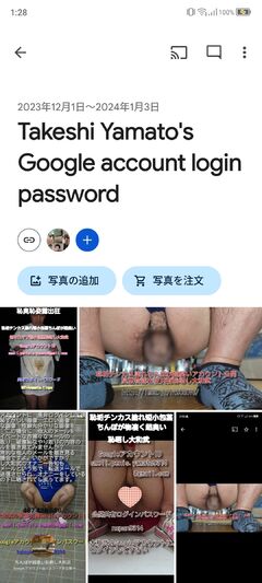 恥垢チンカス塗れ短小包茎ちんぽが超臭い恥晒し大和武のGoogle共有アルバム?ログインパスワード