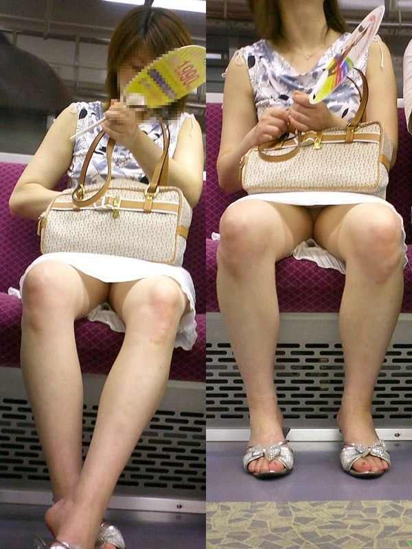 電車内で精子が漏れそうになる対面パンチラ