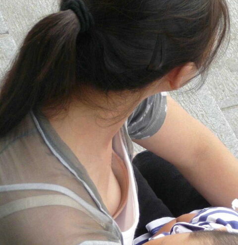 熟女の胸チラ
