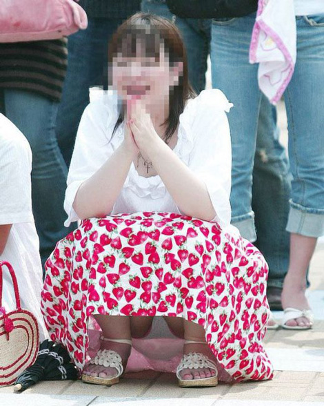 街角女性座りやしゃがみパンチラ盗撮色々20枚