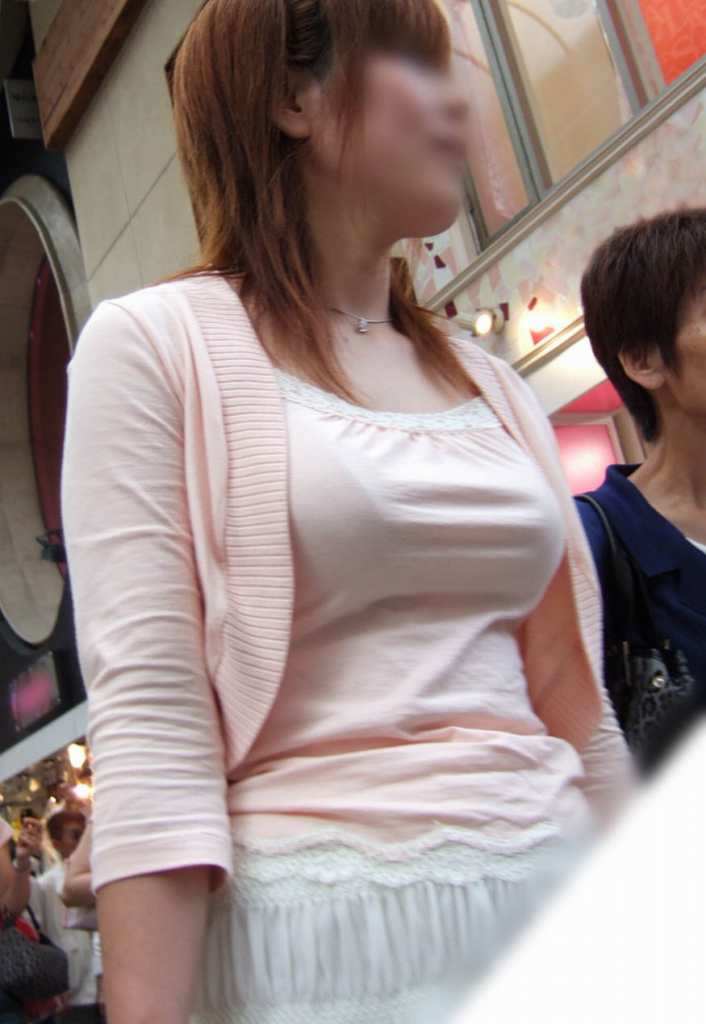 おっぱいの形丸分かり!巨乳お姉さんのピタ着衣エロ画像
