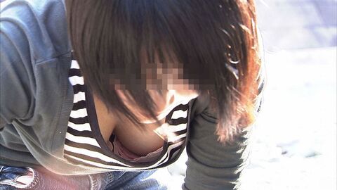 胸元がゆるい洋服を着たお姉さんが前屈みになった