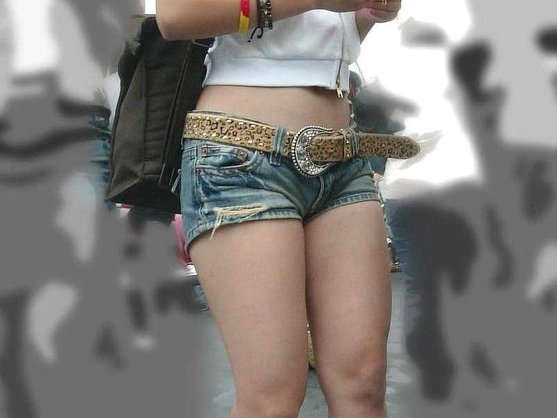 スカートよりもエロい見え方をするパンチラ&半ケツのショートパンツwww