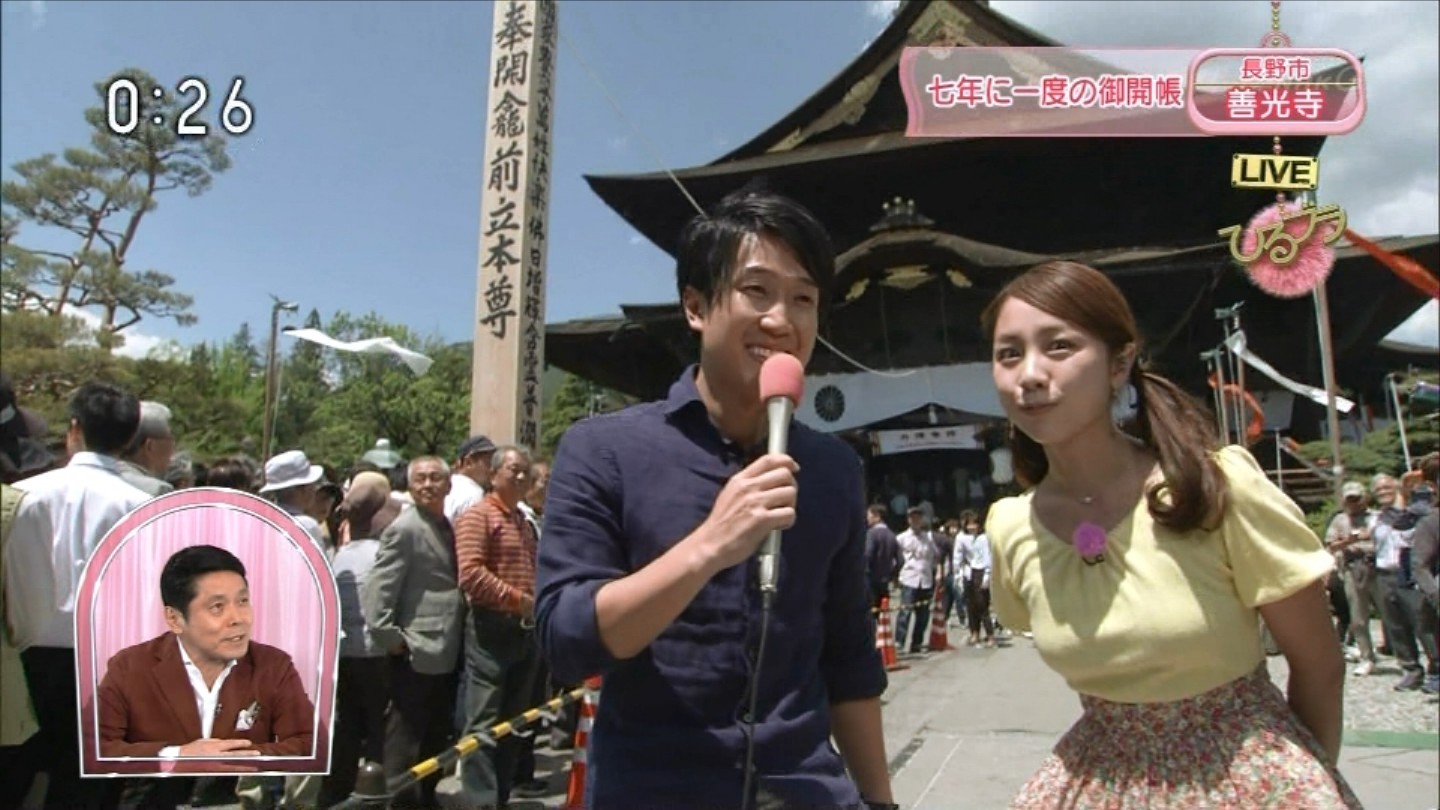 TVに映った女性レポーターの着衣おっぱい