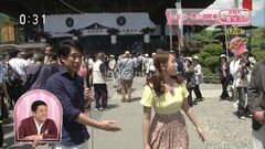 TVに映った女性レポーターの着衣おっぱい