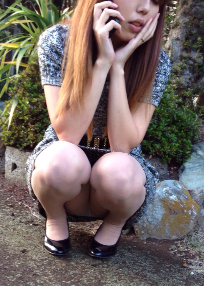 熟女のしゃがみパンスト