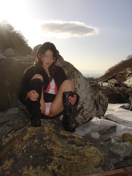 熟女のしゃがみパンスト