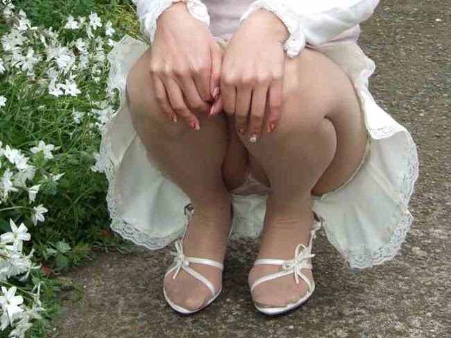 熟女のしゃがみパンスト