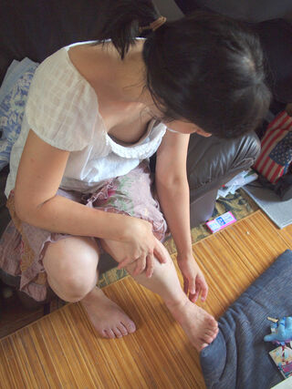 熟女の胸チラ