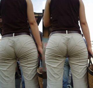 ピタピタパンツの透けパンチラお尻