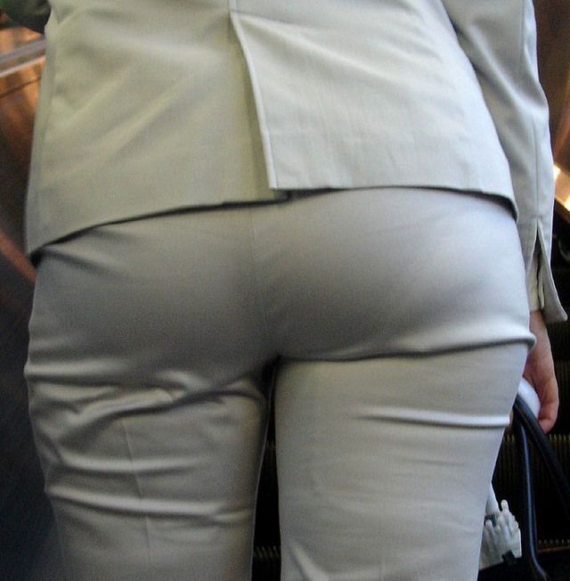 ピチピチのパンツスーツ履いてる美人OLさん