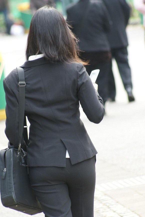 ピチピチのパンツスーツ履いてる美人OLさん