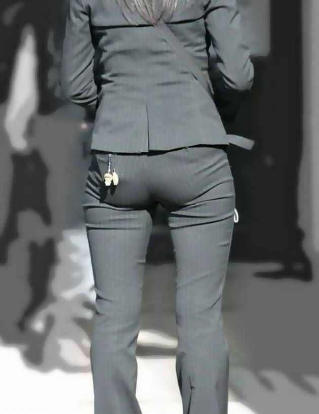 ピチピチのパンツスーツ履いてる美人OLさん